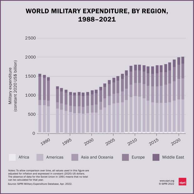 В 2021 году общие военные расходы выросли на 0,7% и достигли рекордных $2,11 млрд. Об этом заявили аналитики шведского SIPRI.
